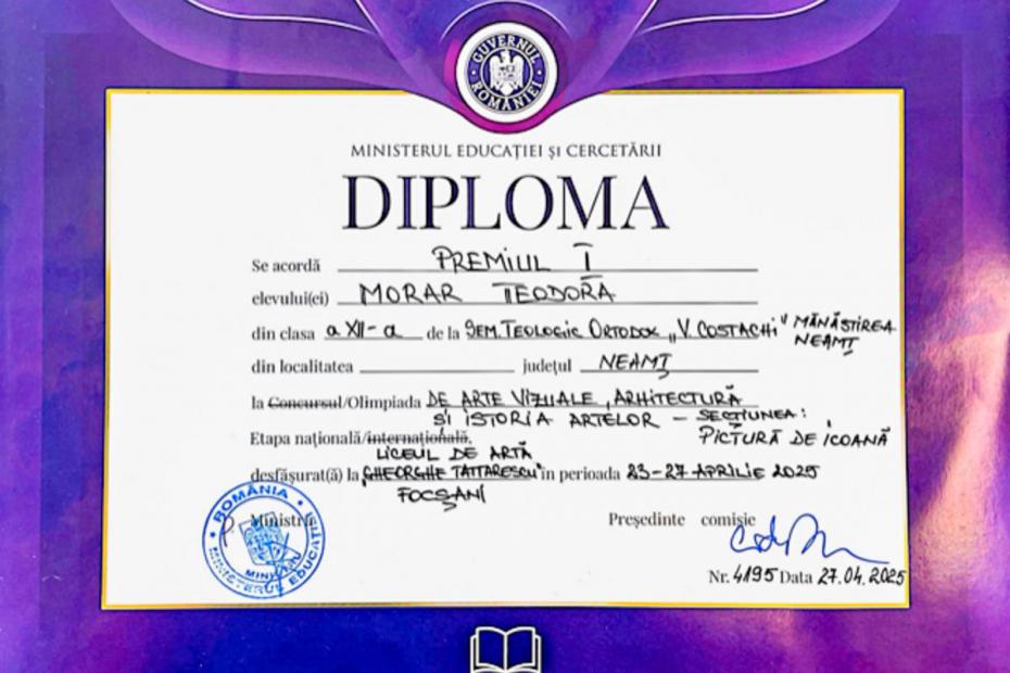 Aceste rezultate vin să confirme încă o dată calitatea actului educațional desfășurat în Seminarul Teologic Ortodox „Veniamin Costachi” de la Mănăstirea Neamț, instituție care aniversează în anul 2025 – 170 de ani de învățământ teologic ortodox românesc, iar din anul 2000, de la înființarea secției Patrimoniu Cultural, 25 de ani.