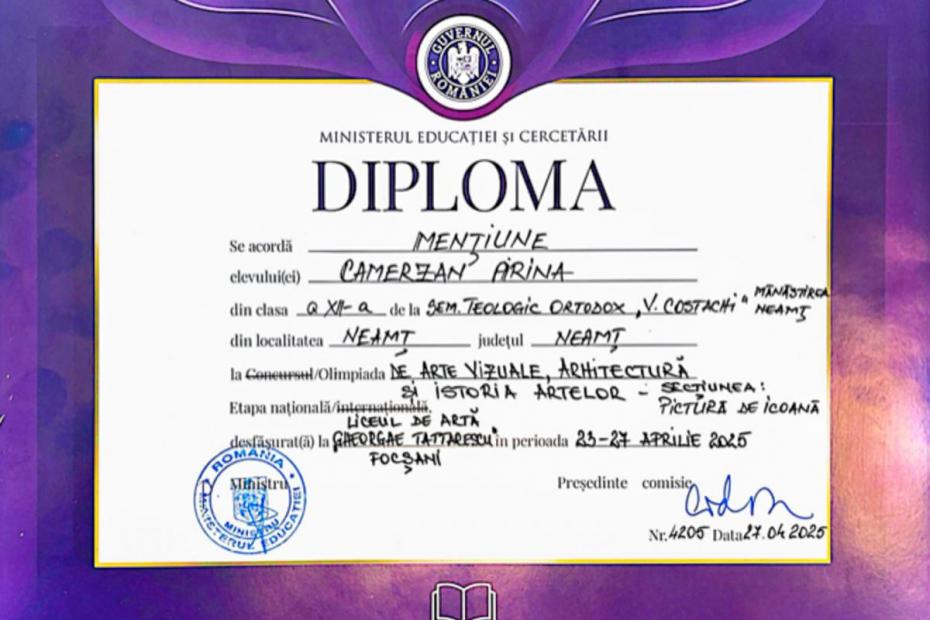 Elevii Seminarului „Veniamin Costachi” – premiați la Olimpiada Națională de Arte Vizuale 2025